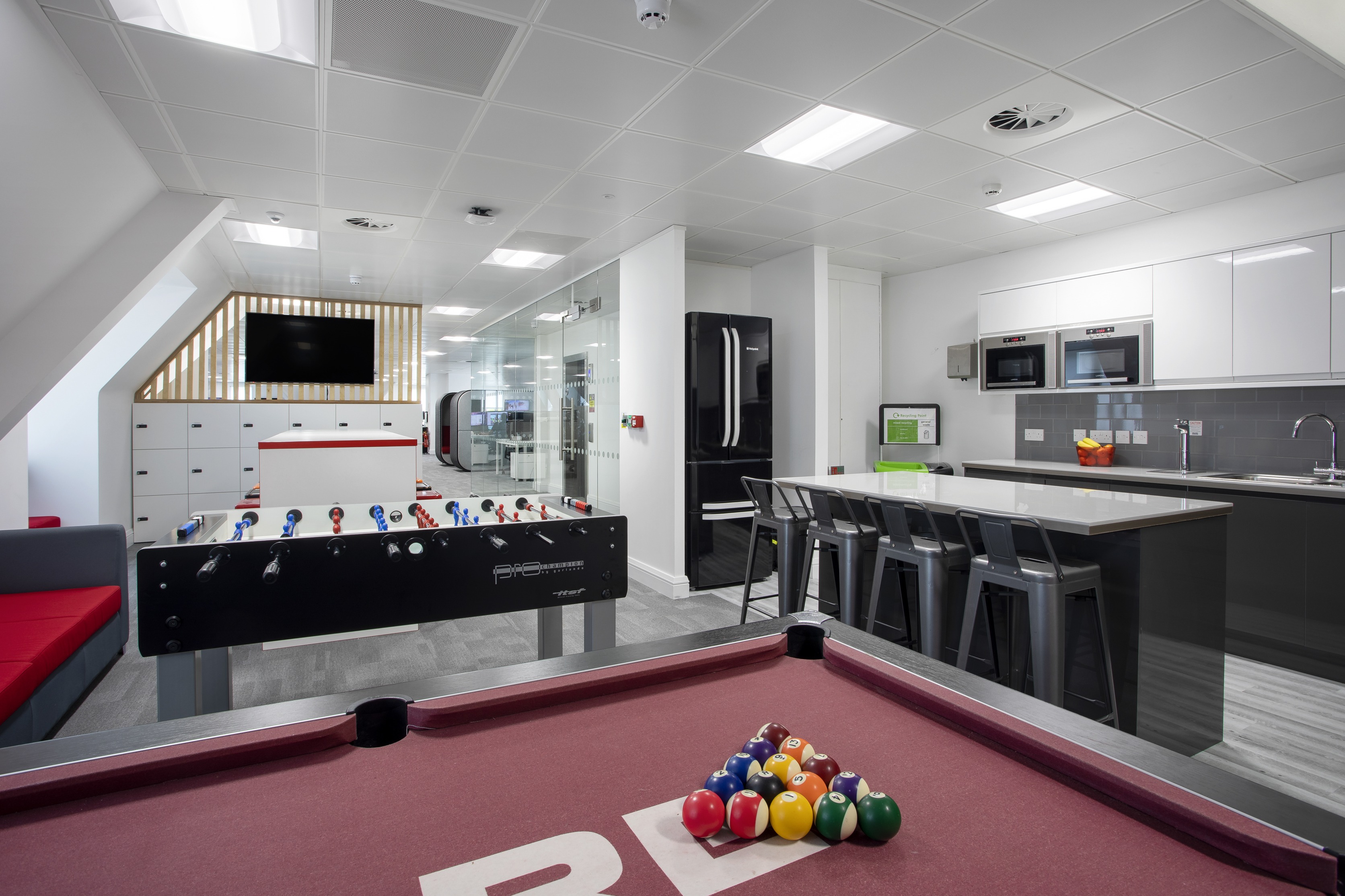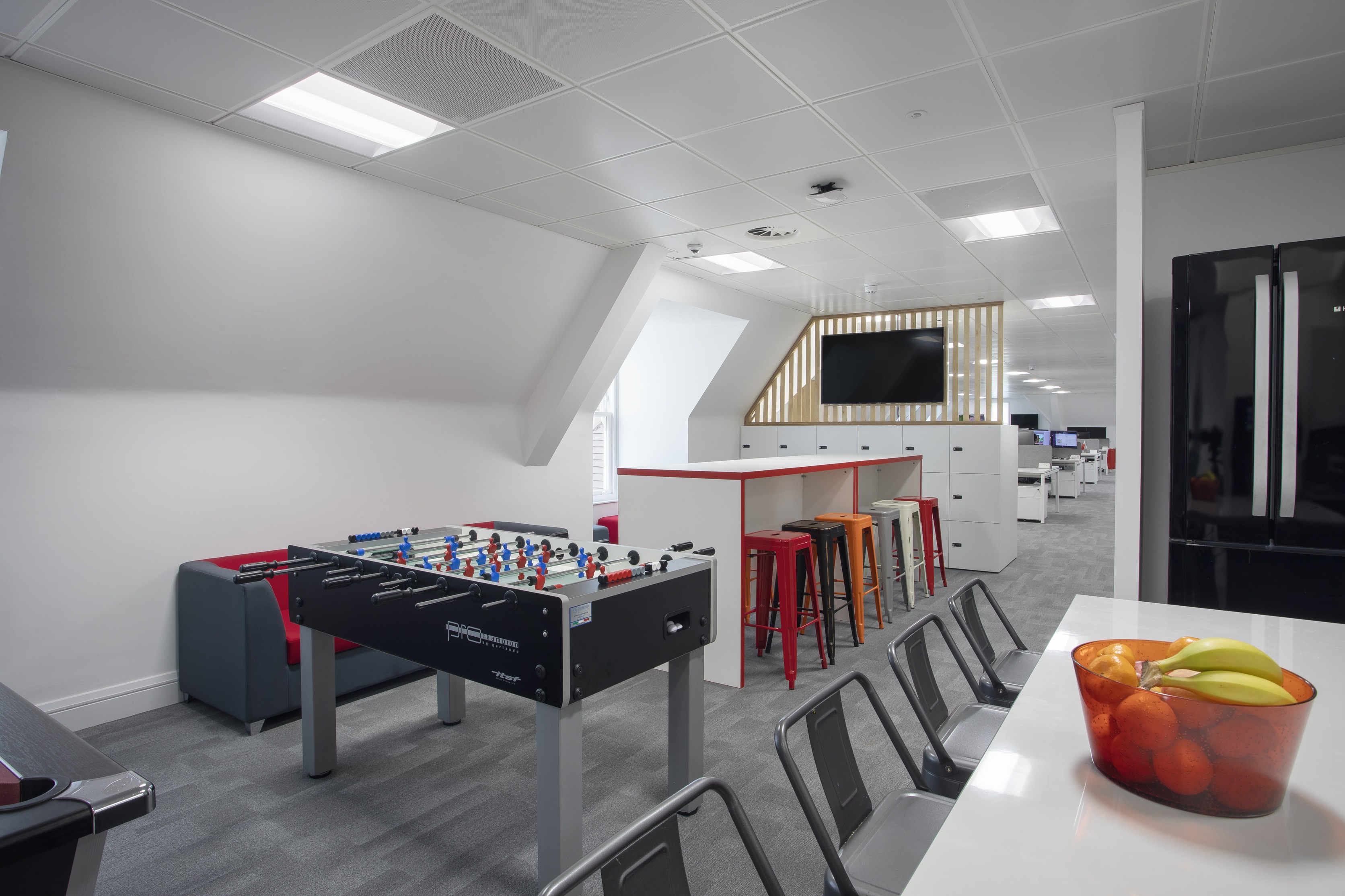 With a young and dynamic team at Core Gaming, we incorporated all necessities that every modern workplace requires, along with collaboration and relax areas to feed the teams creative thinking, not to mention the must have pool and football tables!